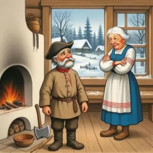 - Старуха — жадная, скупая, не хочет делиться едой, но ее легко обмануть хитростью.